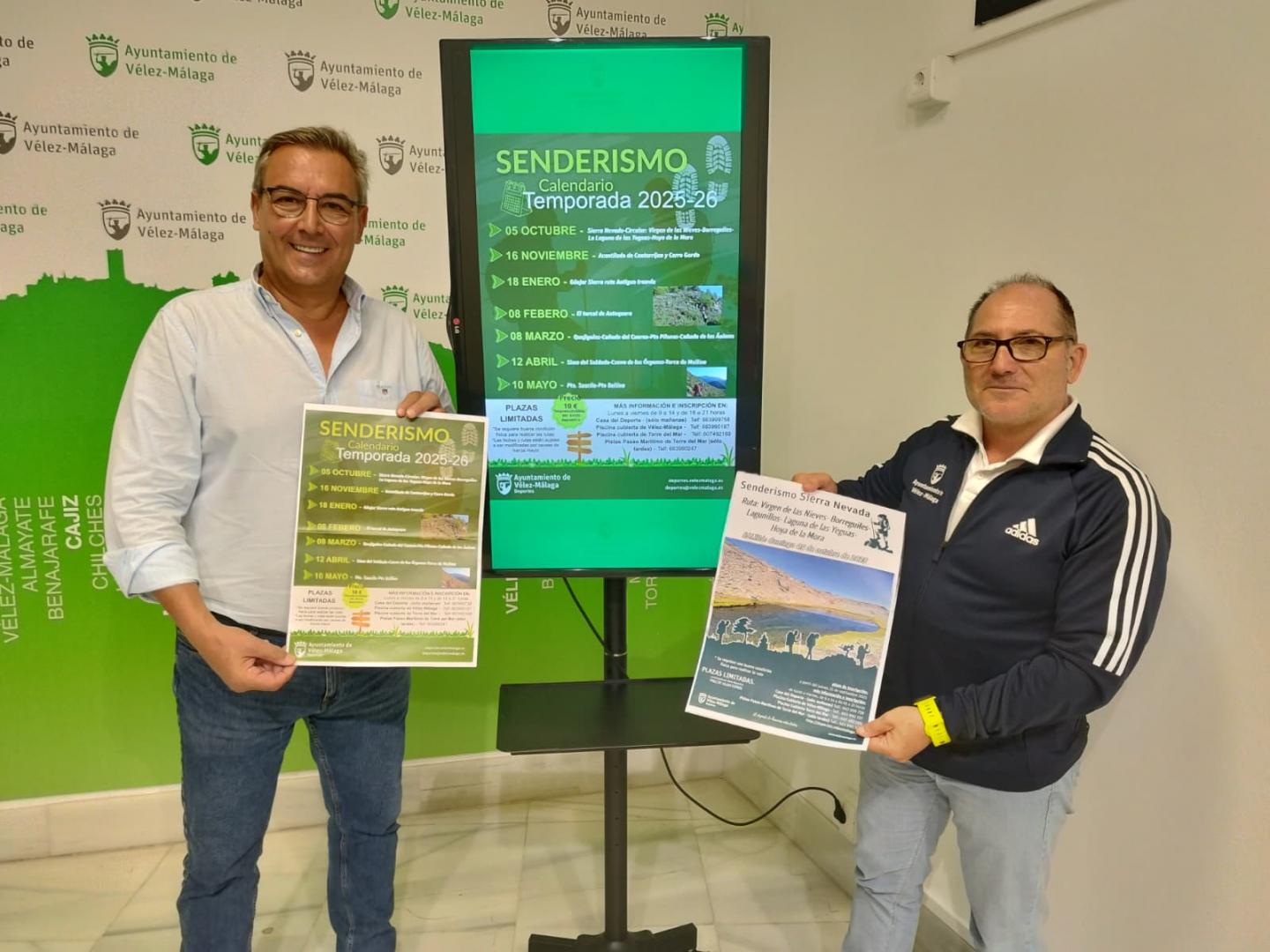 Vélez-Málaga refuerza su compromiso con el deporte y la vida saludable con la presentación del calendario de la temporada 25/26 de senderismo, que arrancará el 5 de octubre con una ruta muy demandada en Sierra Nevada. El programa, lanzado por la Concejalía de Deportes, incluye siete rutas de dificultad moderada que se desarrollarán entre octubre y mayo de 2026, “con el objetivo de fomentar la actividad física y promover hábitos saludables desde la infancia”, según ha explicado el concejal de Deportes del Ayuntamiento, Manuel Gutiérrez, que ha estado acompañado en la comparecencia de prensa por Francisco Valladares, técnico del Área.