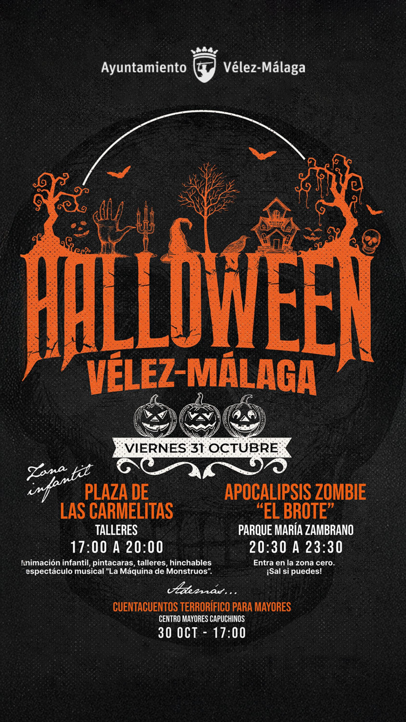 El mencionado apocalipisis zombie se convertirá en un gran recorrido a través del parque veleño con zonas militares, cementerios, laboratorios, cárceles y todo tipo de enclaves disparatados en clave de diversión y el terror más siniestro, “en pleno corazón de Vélez-Málaga, un juego de ingenio lleno de tensión y misterio que estoy convencida de que encantará a los participantes”, ha apostillado la concejala de Juventud. A la “diabólica” propuesta se suma, en la zona de Carmelitas, el espectáculo musical “La máquina de monstruos”.