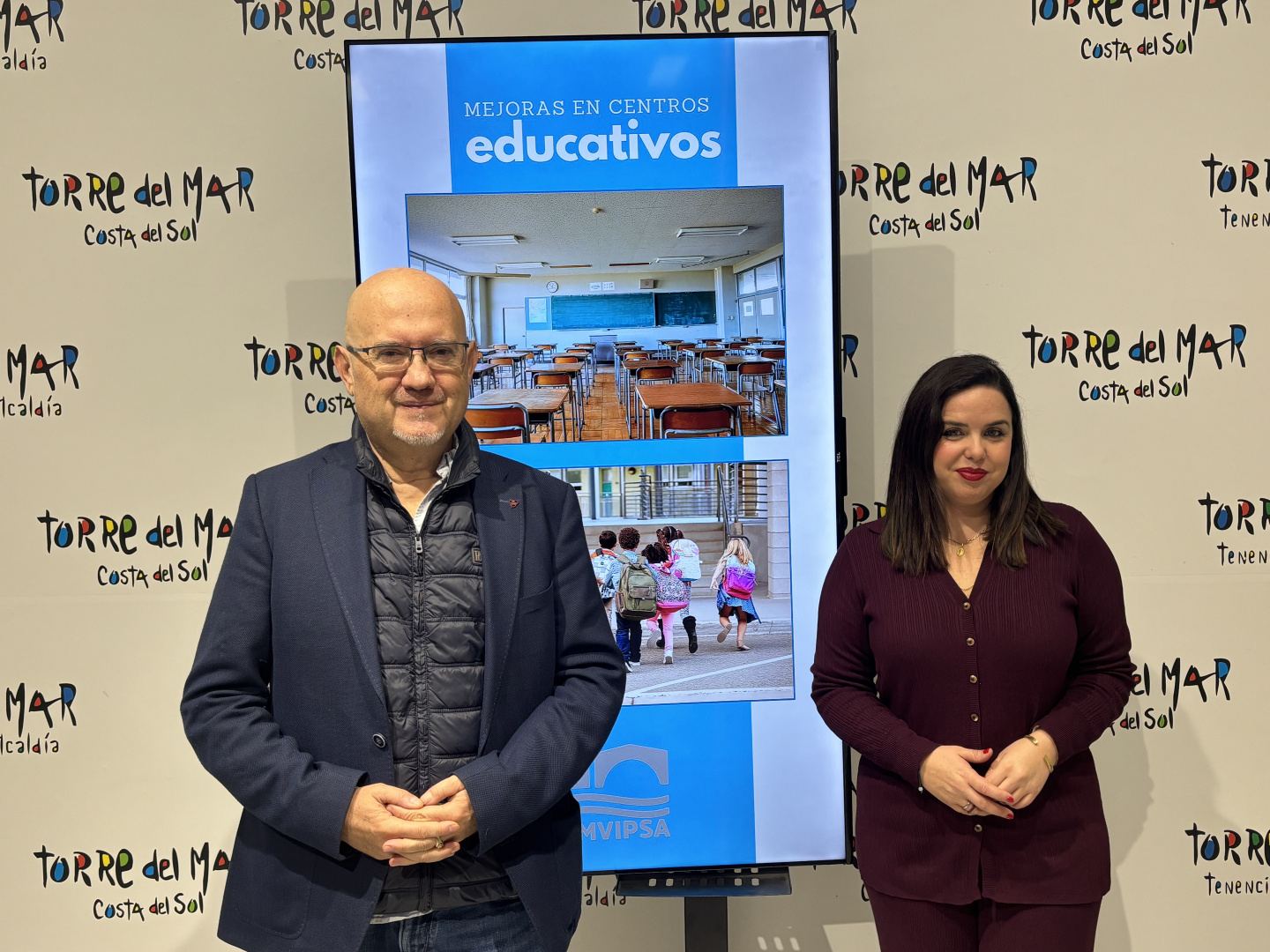 El primer teniente de alcalde del municipio de Vélez-Málaga y concejal delegado de la empresa municipal EMVIPSA, Jesús Pérez Atencia, junto a la concejala de Educación, Lourdes Piña, han informado esta mañana del intenso trabajo de mantenimiento que se viene desarrollando en los centros educativos del municipio a lo largo del primer trimestre del presente curso escolar.