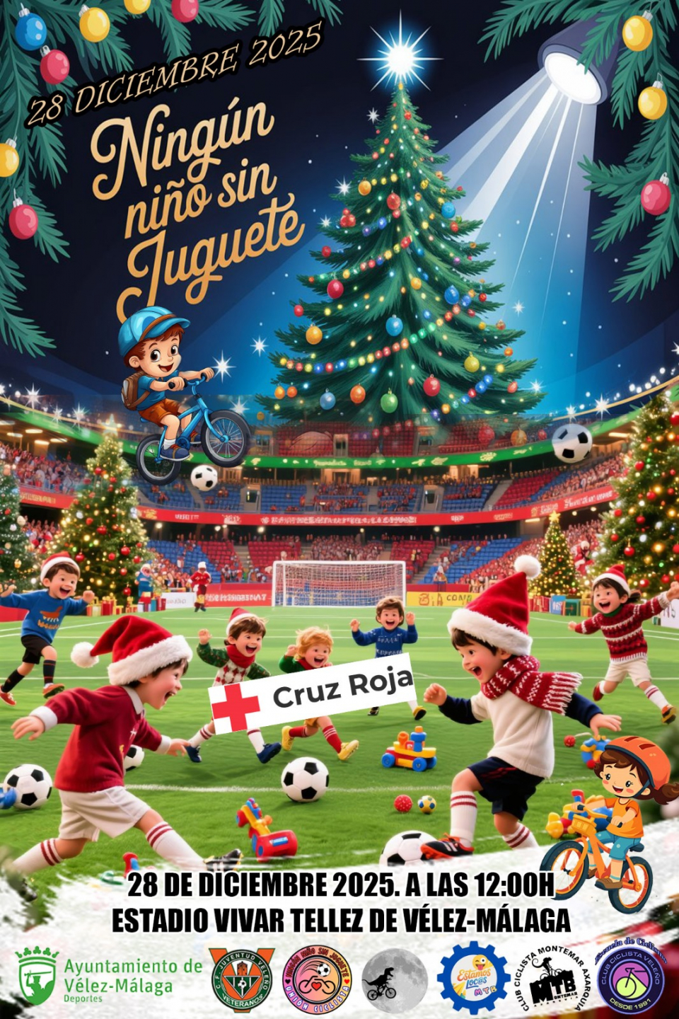 El sábado 27 de diciembre, a las 11:00 horas, la Asociación de Veteranos del Vélez Club de Fútbol organizará un encuentro solidario frente al Club Atletismo Rubeltor. Este torneo, enmarcado en la campaña ‘Ningún Niño Sin Juguete’, alcanza su decimoséptima edición, consolidándose como una de las iniciativas solidarias más emblemáticas del municipio.