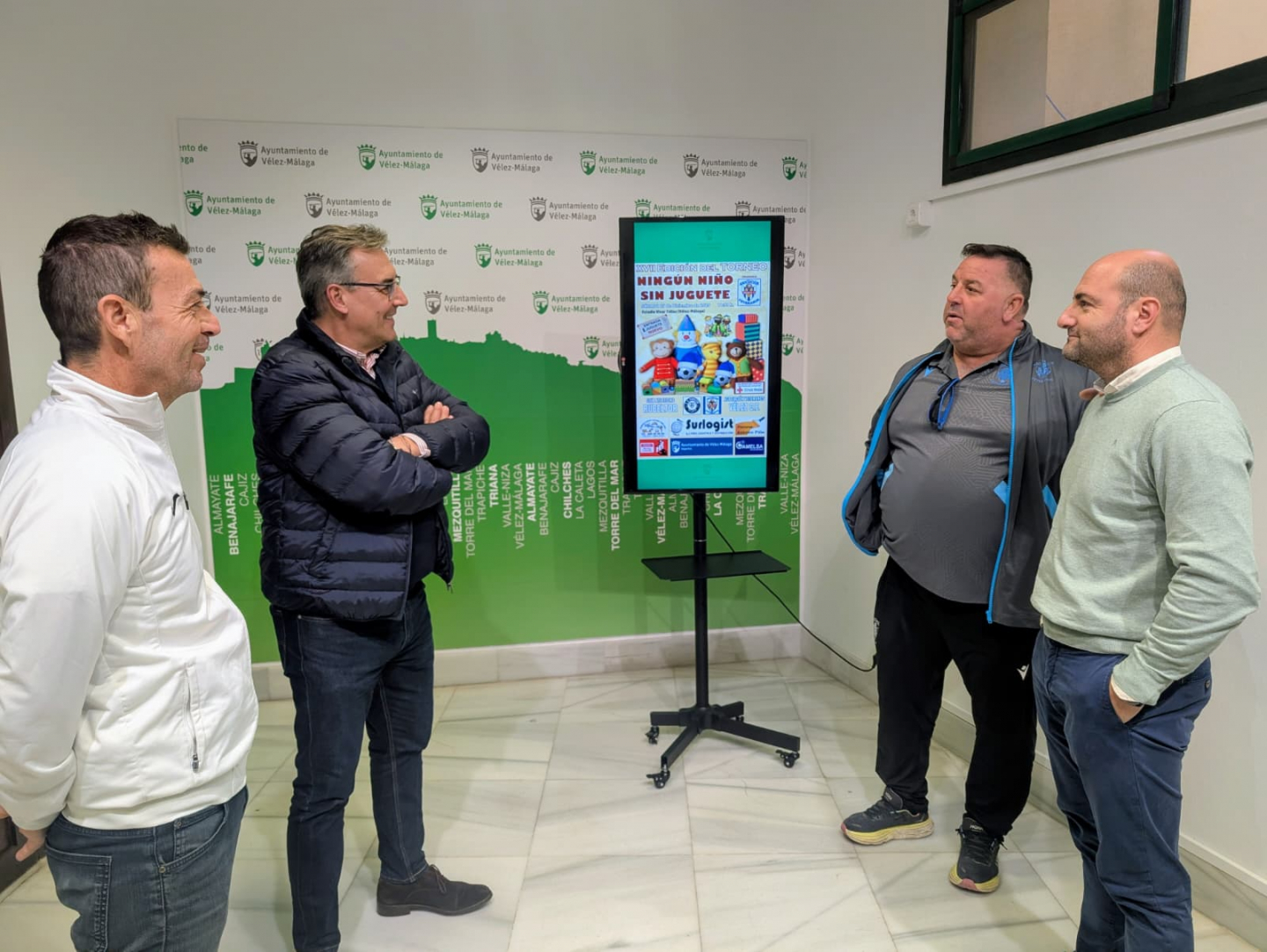 El concejal de Deportes, Manuel Gutiérrez, presentó esta acción solidaria acompañado por los representantes de los clubes organizadores: Francisco Alba y Javier Melgares, por la Asociación de Veteranos del Vélez Club de Fútbol, y José Hijano, por el Club Atletismo Rubeltor. Gutiérrez destacó la importancia de que ningún niño se quede sin ilusión en estas fechas tan especiales: “Con un simple gesto, entregar un peluche o un juguete, podemos asegurarnos de que los niños más necesitados sean felices esta Navidad”.