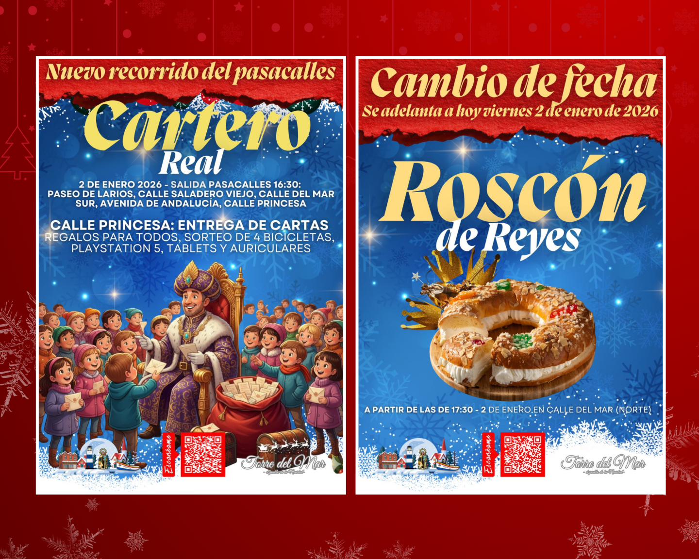 La Tenencia de Alcaldía de Torre del Mar informa de que, por motivos meteorológicos, las actividades previstas dentro de la programación navideña han sido adelantadas al viernes 2 de enero de 2026.