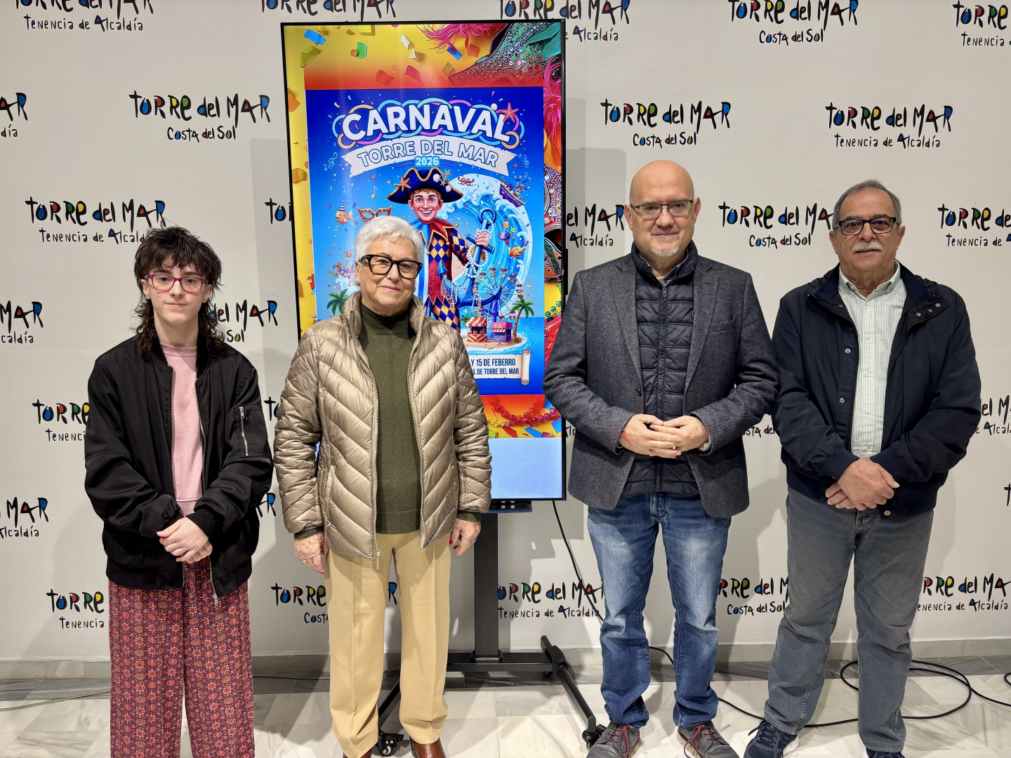 El primer teniente de alcalde del municipio de Vélez-Málaga y teniente de alcalde de Torre del Mar, Jesús Pérez Atencia, ha presentado esta mañana, junto a la presidenta de la Peña Círculo 81, Ana María Sánchez; Antonio Martín Robles, vicepresidente de la Peña; la autora del cartel del Carnaval 2026, Natalia Pareja; y la concejala de Tradiciones Populares, Lourdes Piña, los principales actos del Carnaval de Torre del Mar, que se celebrará los días 13, 14 y 15 de febrero.