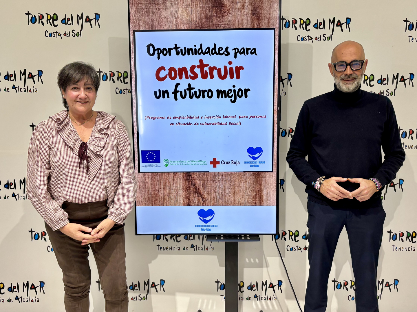 El concejal de Asuntos Sociales, Juan García, junto a la presidenta comarcal de Cruz Roja, Ana Isabel Rincón, han presentado este acuerdo en la Tenencia de Alcaldía de Torre del Mar, destacando la importancia de seguir trabajando de forma conjunta en la mejora de las oportunidades laborales de la ciudadanía.