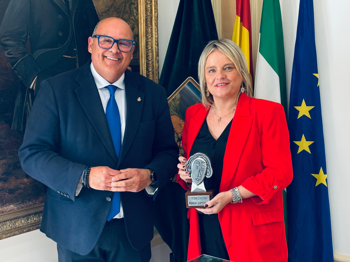 El alcalde de Vélez-Málaga, Jesús Lupiáñez, ha recibido este viernes en la Sala Noble del Ayuntamiento a Mari Mar Blanco, hermana de Miguel Ángel Blanco, acto previo a la inauguración del Bulevar Miguel Ángel Blanco en Camino Viejo, este viernes a las 18:00 horas, un espacio que rendirá homenaje a la memoria de todas las víctimas del terrorismo y refuerza los valores de libertad, unidad y democracia en la ciudad.