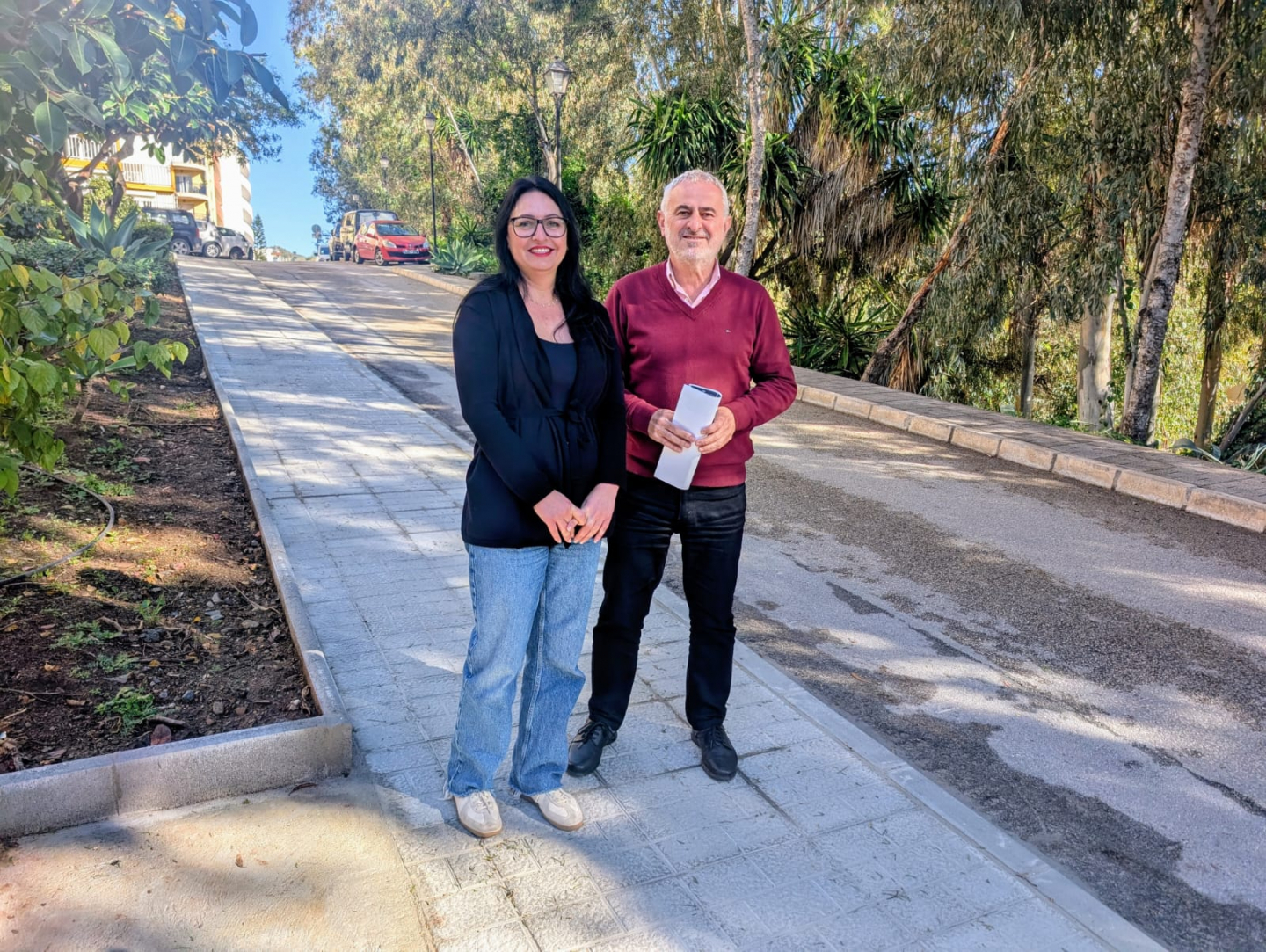 El concejal de Infraestructuras del Ayuntamiento de Vélez-Málaga, Jesús María Claros, y la teniente de alcalde de Benajarafe, Rocío Ruiz, se han personado en la mañana de hoy para recepcionar la culminación de obras de mejora y renovación del acerado en la urbanización Paraísol del Sol, situada en el núcleo poblacional, una actuación determinante para los vecinos de la zona y que vendrá a responder a la demanda realizada por los mismos meses atrás. Se da en este caso cumplicada respuesta a una nueva intervención en el capítulo de actuaciones que se vienen llevando a cabo en los últimos meses conforme al Plan de Fomento de Empleo Agrario (PFEA), fondos correspondientes al ejercicio de 2025 en el Área de Infraestructuras y cuya disposición por parte del Gobierno local ha permitido la acción en numerosas localizaciones de nuestro entorno, para reparaciones, restauración y adecuación de los distintos equipamientos que requieren de acometida o demandas presentadas por los propios ciudadanos.