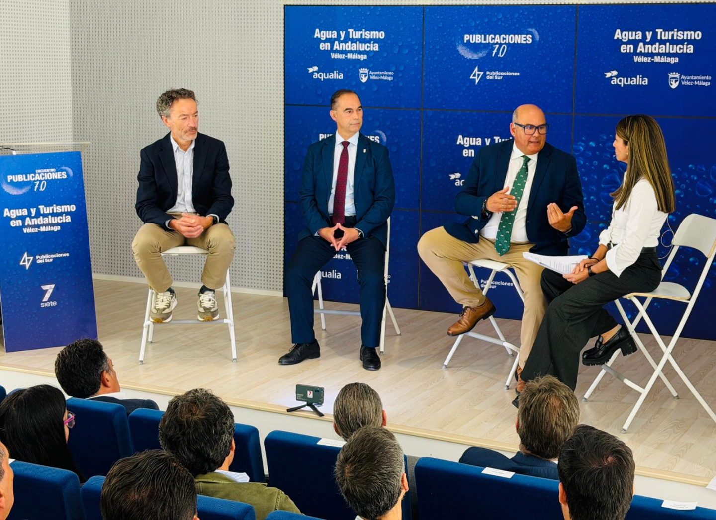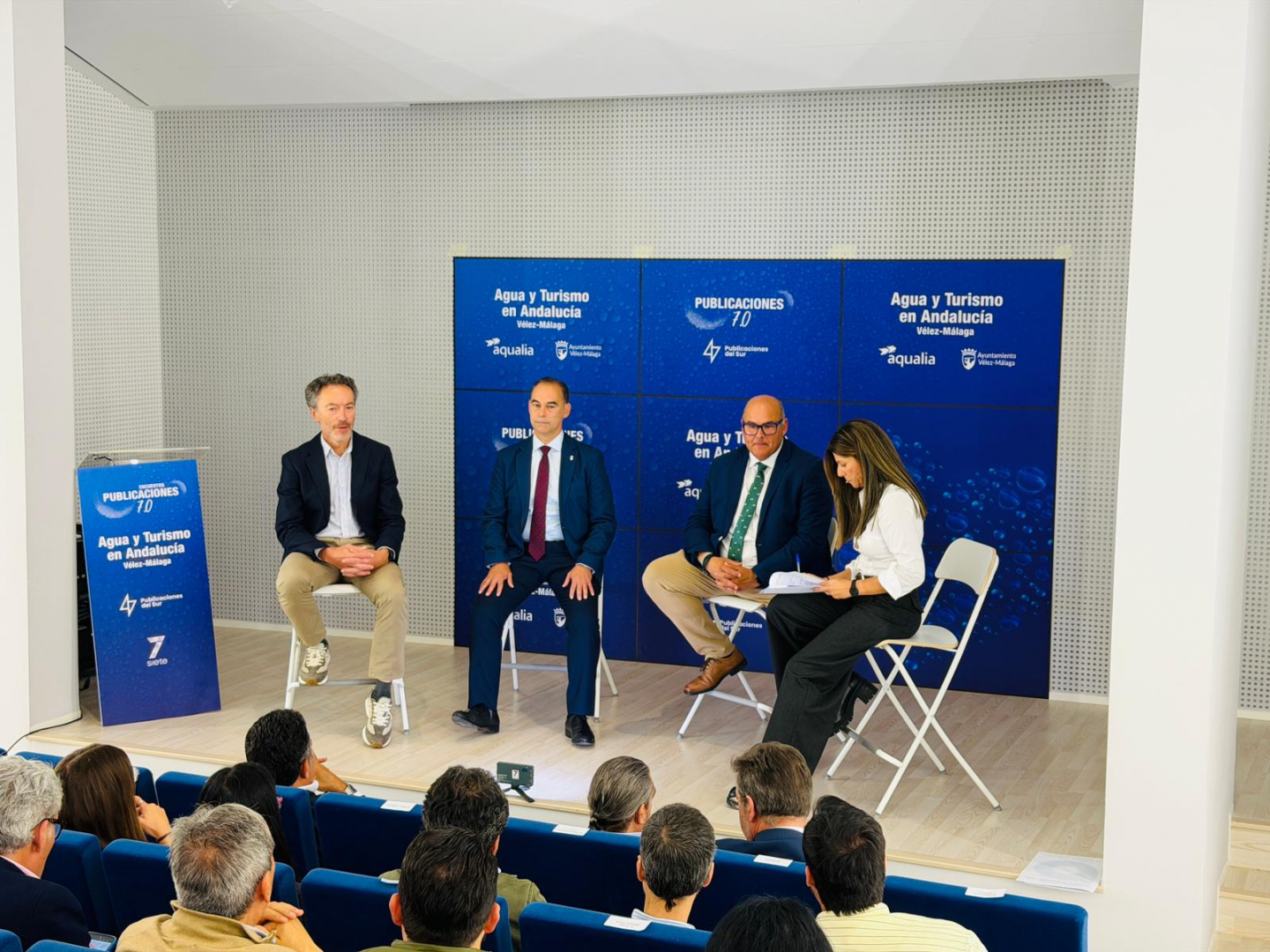 El encuentro sobre el agua ha sido proyectado por la empresa adjudicataria del suministro en Vélez-Málaga, Aqualia, con la colaboración del Consistorio, y con la presencia de diversos expertos en el sector provenientes de otras delegaciones andaluzas de la entidad. La cita ha estado presidida por el alcalde veleño, Jesús Lupiáñez, junto al gerente de Axaragua, Francisco Moreno, y el alcalde de Benalmádena, Juan Antonio Lara. El foro ha contado, asimismo, con la intervención de José Vicente Colomina, director de la Delegación Málaga-Granada-Almería de Aqualia.