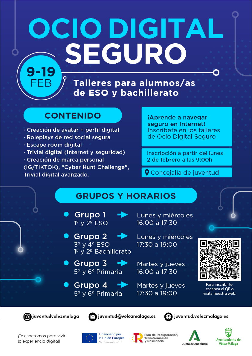 Vivimos conectados: redes sociales, videojuegos, vídeos, chats… El ocio digital forma parte de nuestro día a día. En estos talleres gratuitos aprenderemos a disfrutar de internet y la tecnología de forma segura, responsable y divertida: Ocio Digital Seguro.
