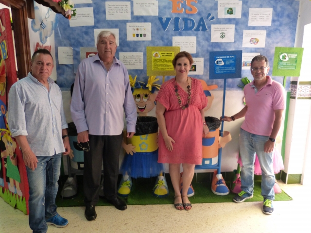 El concejal de Medio Ambiente, Marcelino Méndez-Trelles, y la concejala de Nuevas Tecnologías, Ana Campos, han visitado esta mañana el Centro de Educación Infantil y Primaria Axarquía, de Vélez-Málaga, para conocer un proyecto de reciclaje que realizan los alumnos del aula de infantil de cuatro años.