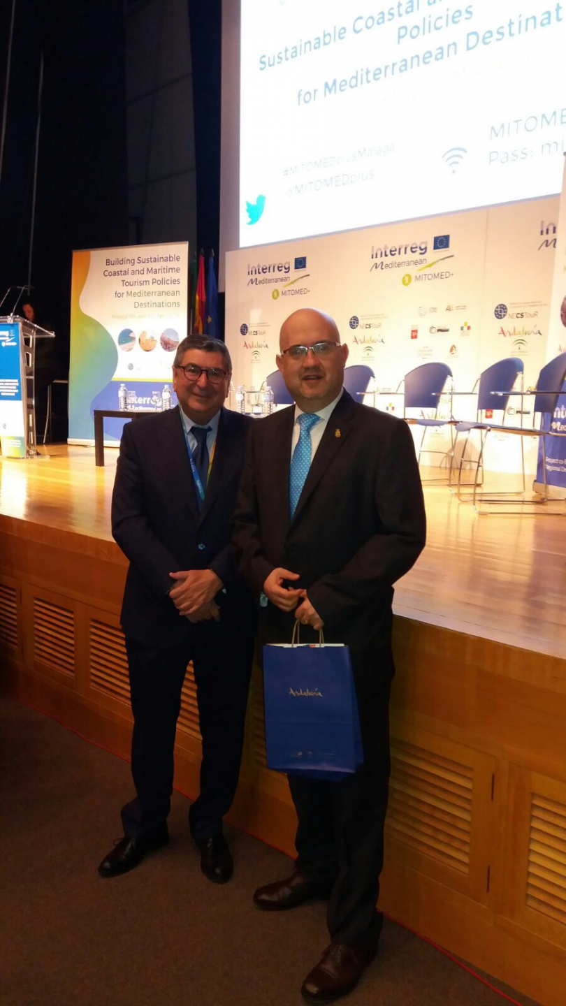 El alcalde de Vélez-Málaga, Antonio Moreno Ferrer, y el teniente alcalde de Torre del Mar y concejal de Turismo del Ayuntamiento, Jesús Pérez Atencia, asistieron a la conferencia "Construyendo políticas de turismo costero y marítimo sostenible para destinos costeros MED", que durante el día de hoy y mañana se celebra en la sede de Turismo Andaluz de Málaga. La jornada se enmarca en el proyecto europeo Mitomed+, que por primera vez celebra uno de sus eventos en Andalucía y cuenta con la participación de unos 150 profesionales.