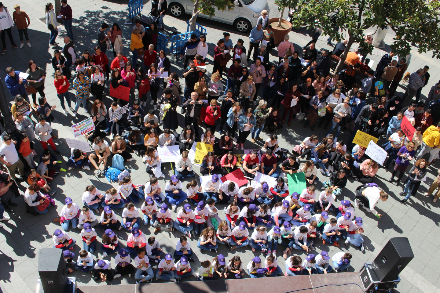 Las representaciones musicales realizadas por el “Corito del Reñidero” y por los alumnos del IES Joaquín Lobato fueron las protagonistas de una jornada en la que tocaba celebrar y también reivindicar. La fachada del consistorio lució un gigante lazo morado y mujeres representantes de los diferentes grupos políticos del Ayuntamiento realizaron la lectura de un manifiesto.