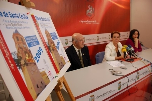 La concejala de Cultura y Patrimonio, Sara Sánchez, junto al presidente y la directora de la Coral ?Amigos de la música?, Carlos Durán y Luisa Camacho, respectivamente, ha presentado el concierto que se celebrará, el próximo domingo 22 de noviembre, a las 13,00 horas, en la Iglesia de San Juan, para homenajear a Santa Cecilia, patrona de la música.