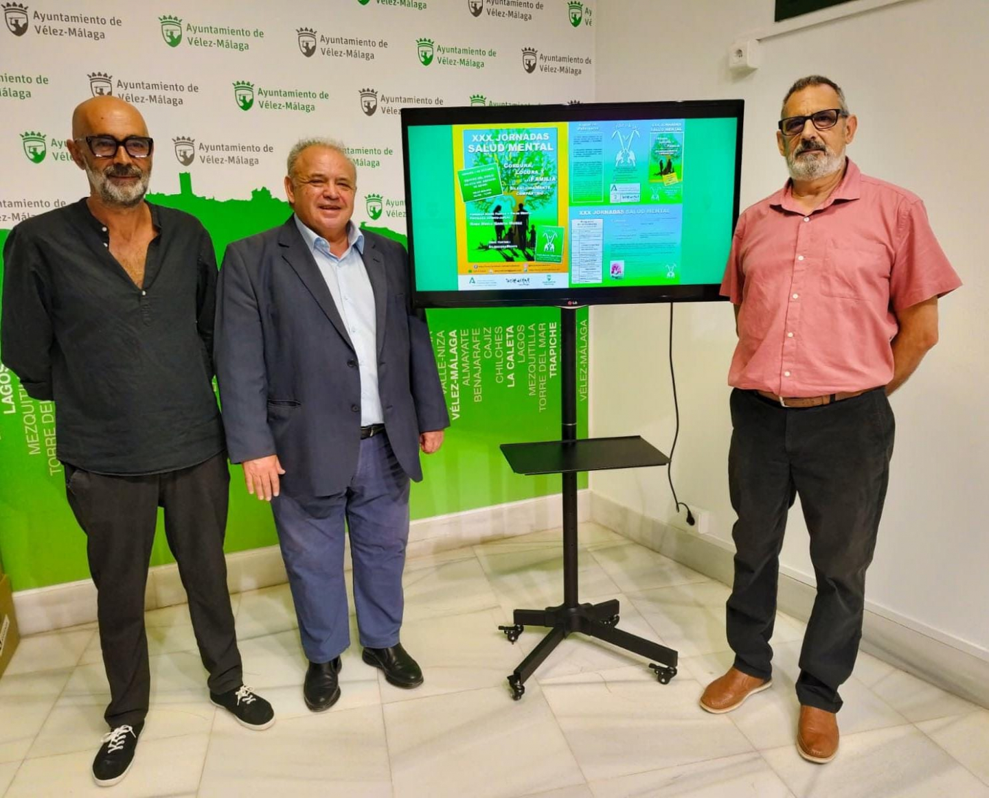 El concejal de Salud del Ayuntamiento de Vélez-Málaga, Juan Fernández Olmo, el de Asuntos Sociales, Juan García, y el presidente de la Asociación Valeriana, Juan Ramón Martos, han desglosado en la mañana de este miércoles toda la programación del evento, que lleva por lema: “Cordura, locura y… familia”.
