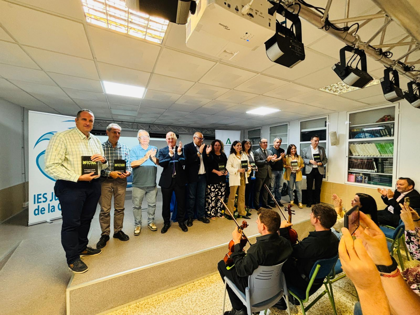 El IES Juan de la Cierva de Vélez-Málaga ha sido hoy el escenario de un acto muy especial en el que Miguel Briones, delegado territorial de Desarrollo Educativo y Formación Profesional y de Universidad, Investigación e Innovación, ha entregado oficialmente el libro Infectado, del ingeniero y emprendedor veleño Bernardo Quintero. La obra, editada por Fundación Unicaja, se distribuirá en centros educativos de toda la provincia de Málaga, pero hoy se ha puesto el foco en los institutos de nuestro municipio, reforzando su papel como referentes de inspiración y formación.