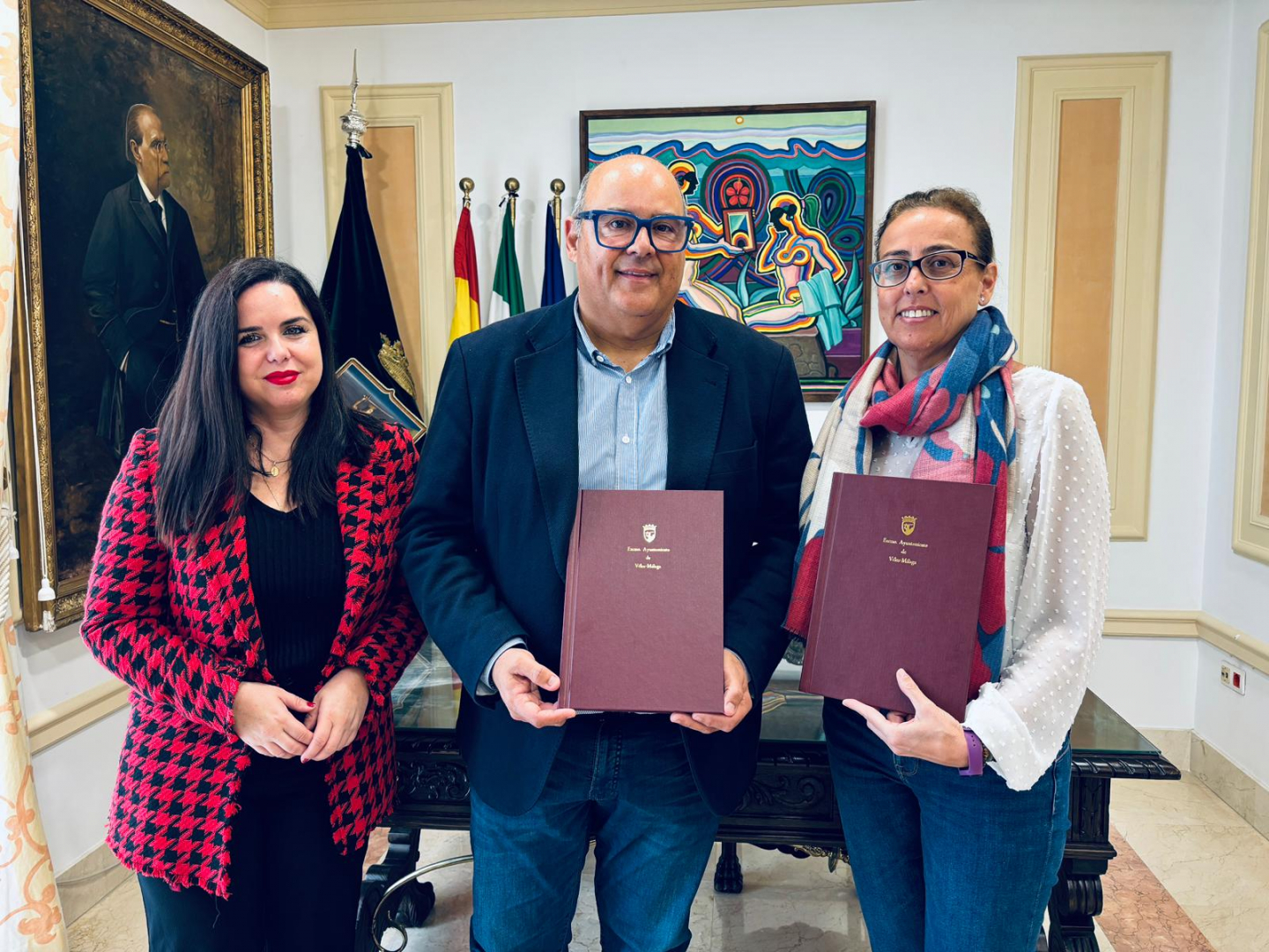 El Ayuntamiento de Vélez-Málaga continúa reforzando su compromiso con la educación y el reconocimiento al mérito académico de los jóvenes del municipio. En la Sala Noble del Consistorio, el alcalde Jesús Lupiáñez y la hermana mayor de la Cofradía de los Estudiantes, Raquel García, firmaron este viernes la modificación del convenio de colaboración que regula el premio al mejor expediente de Bachillerato “Ciudad de Vélez-Málaga”, un acto que contó también con la presencia de la concejala de Educación, Lourdes Piña.