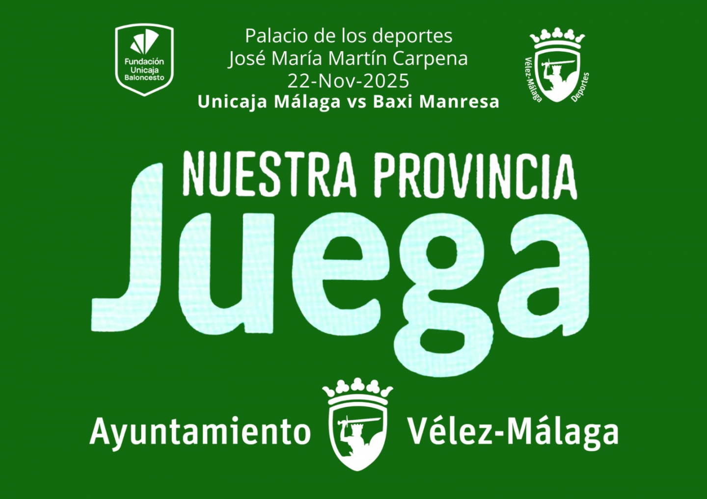 Vélez-Málaga brillará con luz propia el próximo sábado 22 de noviembre durante el partido liguero que enfrenta al Unicaja de Baloncesto frente al Baxi Manresa. Más de 10.000 personas acudirán al Martín Carpena para apoyar a su equipo y tendrán la oportunidad de conocer la esencia del municipio, gracias al programa ‘Nuestra provincia juega’, una iniciativa del club malagueño que nació con el fin de promocionar y dar a conocer diferentes municipios de Málaga.