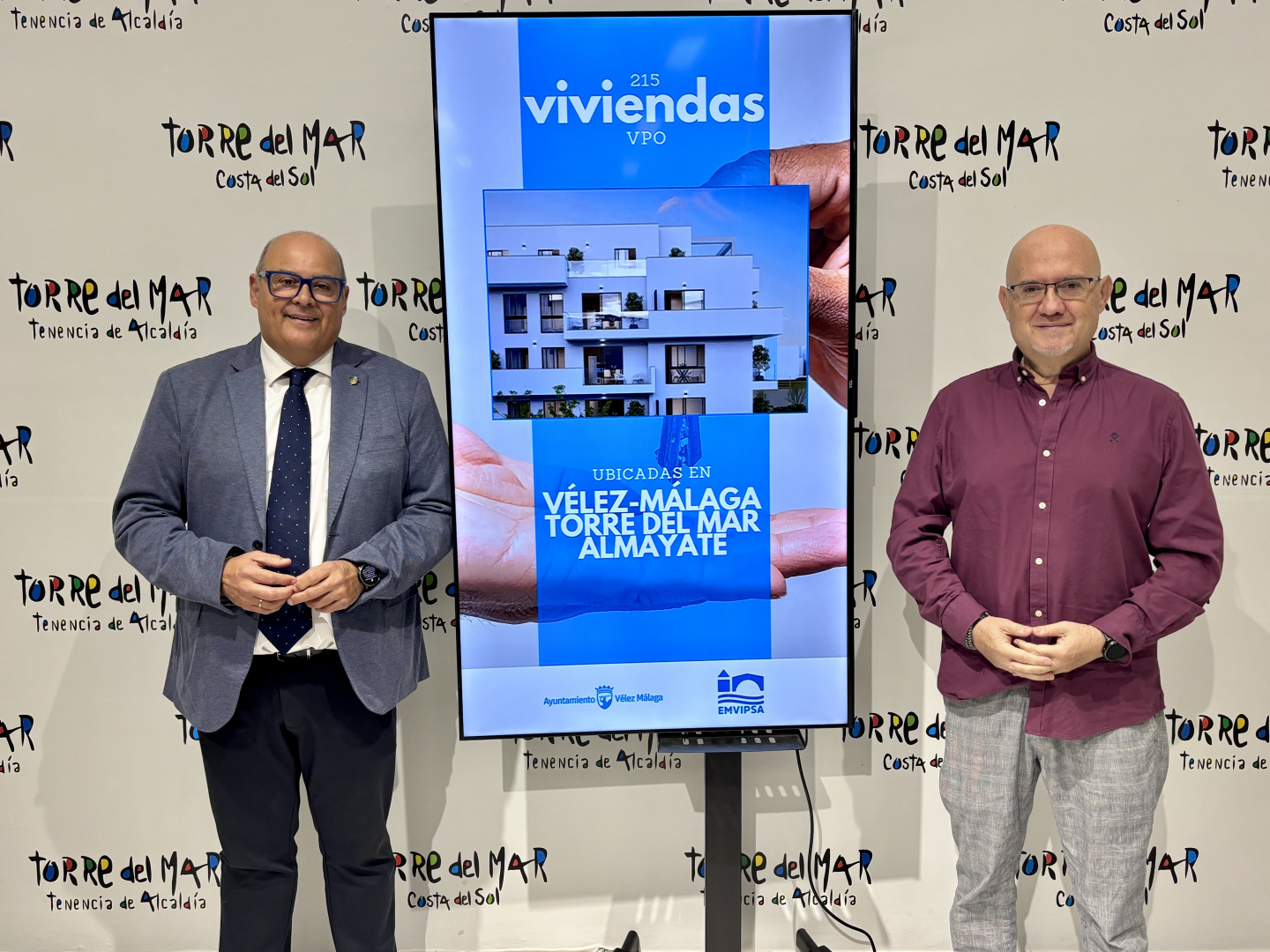 El Ayuntamiento de Vélez-Málaga ha presentado hoy el inicio de un importante conjunto de promociones de vivienda protegida, que permitirá poner a disposición de la ciudadanía un total de 215 viviendas de régimen general en distintos puntos del término municipal: Vélez-Málaga, Torre del Mar y Almayate.