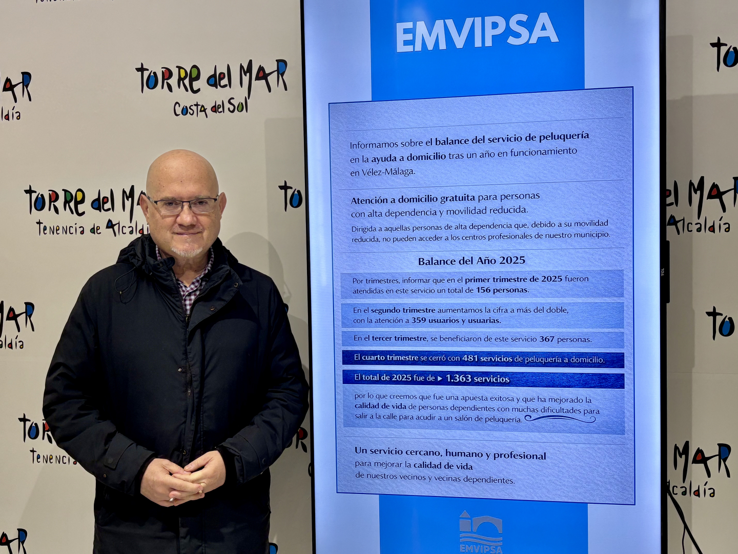La Empresa Municipal EMVIPSA, a través de su concejal delegado y primer teniente de alcalde del municipio, Jesús Pérez Atencia, ha ofrecido este viernes una rueda de prensa para presentar el balance del servicio de peluquería a domicilio destinado a los usuarios y usuarias de la ayuda a domicilio en Vélez-Málaga, una iniciativa que cumple su primer año de funcionamiento con cifras “muy positivas”.