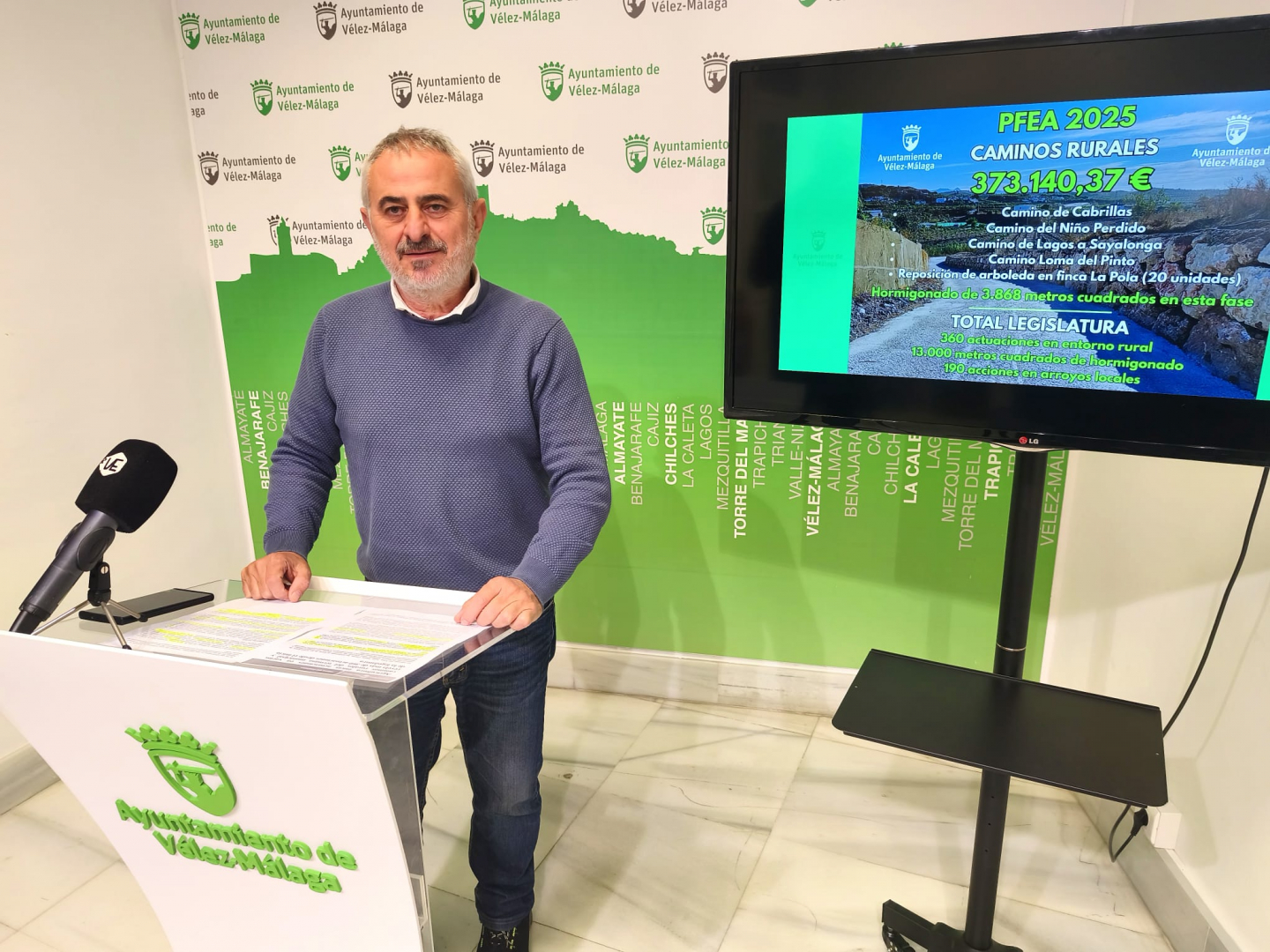 El concejal de Agricultura del Ayuntamiento veleño, Jesús María Claros, ha presentado en la mañana de hoy, en comparecencia en sala de prensa, el comienzo de nuevas actuaciones de arreglo y acondicionamiento de varios carriles del término municipal, obras integradas en el plan de acción de la Delegación conforme al Programa de Fomento de Empleo Agrario (PFEA) 2025 de Agricultura, y que están vertebradas en importantes demandas de los transeúntes y vehículos que, a menudo, circulan por las inmediaciones de esas localizaciones. Como muchos entornos locales, han sufrido el deterioro del firme por el paso del tiempo y su utilización, así como por la incidencia de precipitaciones, registradas de forma notable en los últimos meses. Las actuaciones planificadas se suman a las llevadas a cabo en varios tramos rurales en el año 2024. La Delegación municipal ha realizado 360 arreglos de carriles y 190 actuaciones en arroyos desde el comienzo de la legislatura.