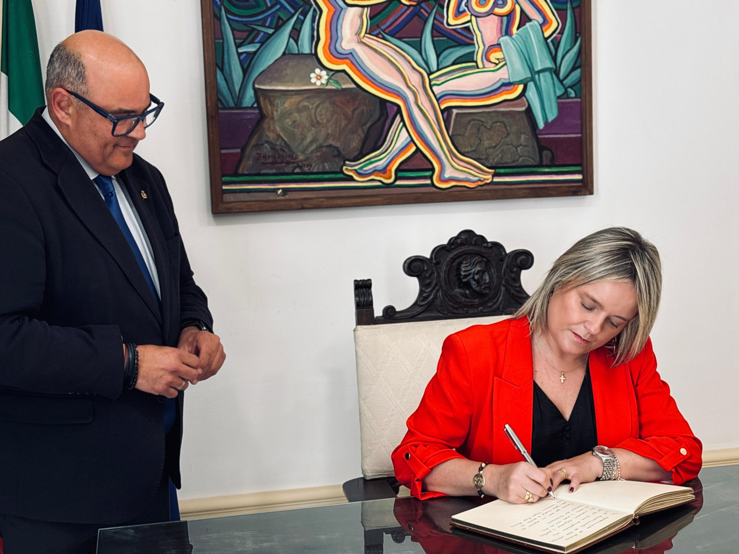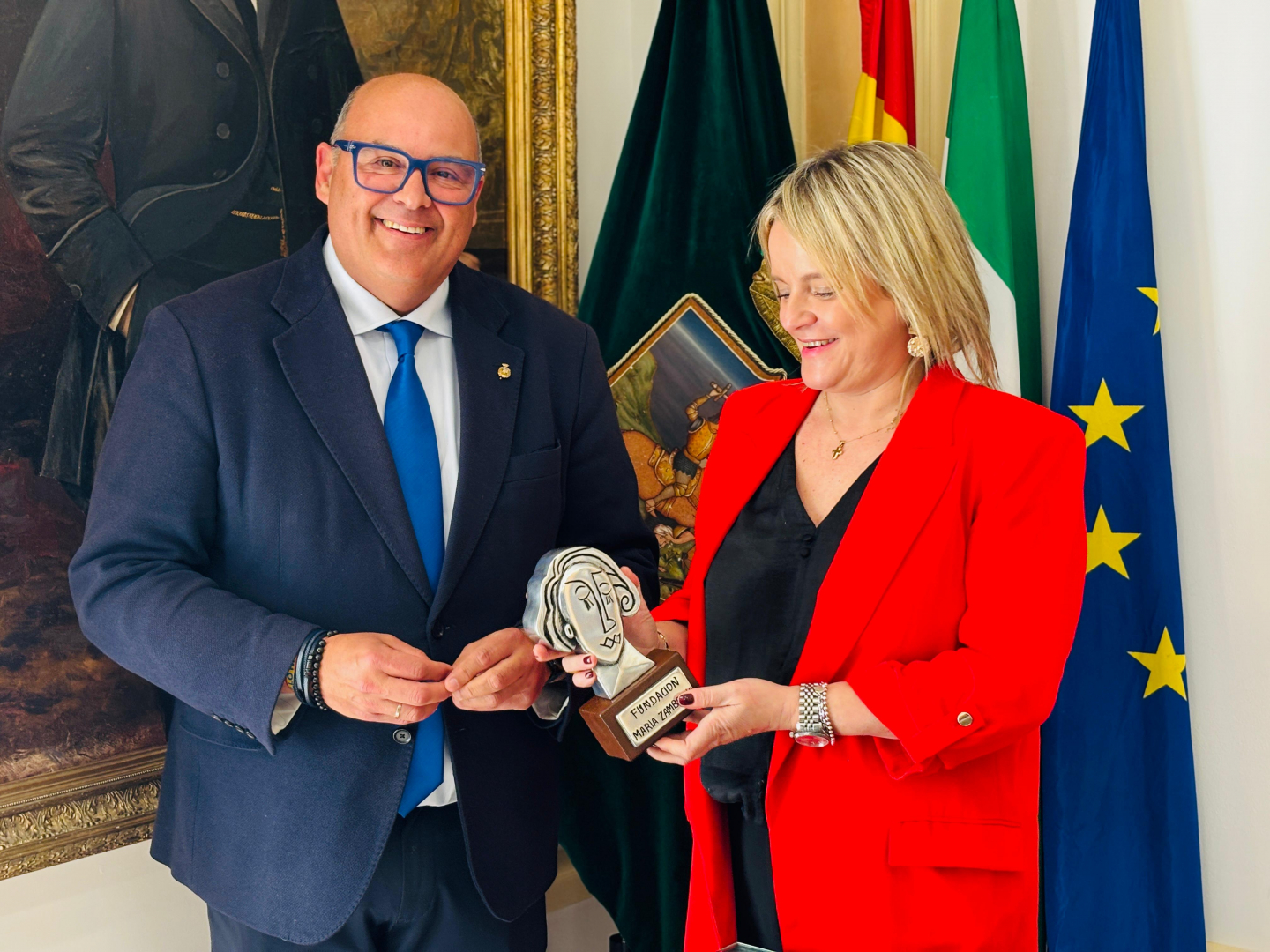 El alcalde de Vélez-Málaga, Jesús Lupiáñez, ha recibido este viernes en la Sala Noble del Ayuntamiento a Mari Mar Blanco, hermana de Miguel Ángel Blanco, acto previo a la inauguración del Bulevar Miguel Ángel Blanco en Camino Viejo, este viernes a las 18:00 horas, un espacio que rendirá homenaje a la memoria de todas las víctimas del terrorismo y refuerza los valores de libertad, unidad y democracia en la ciudad.