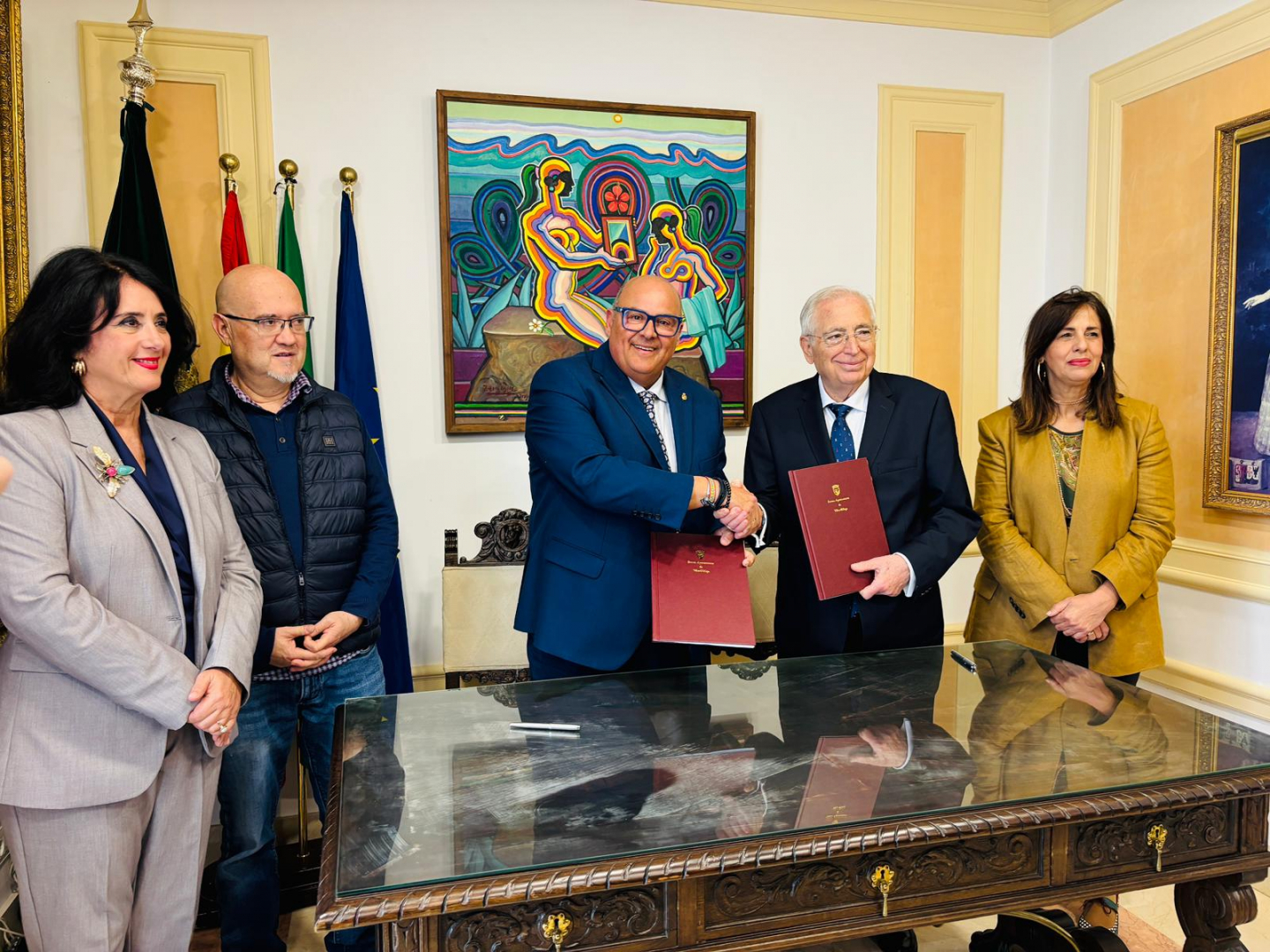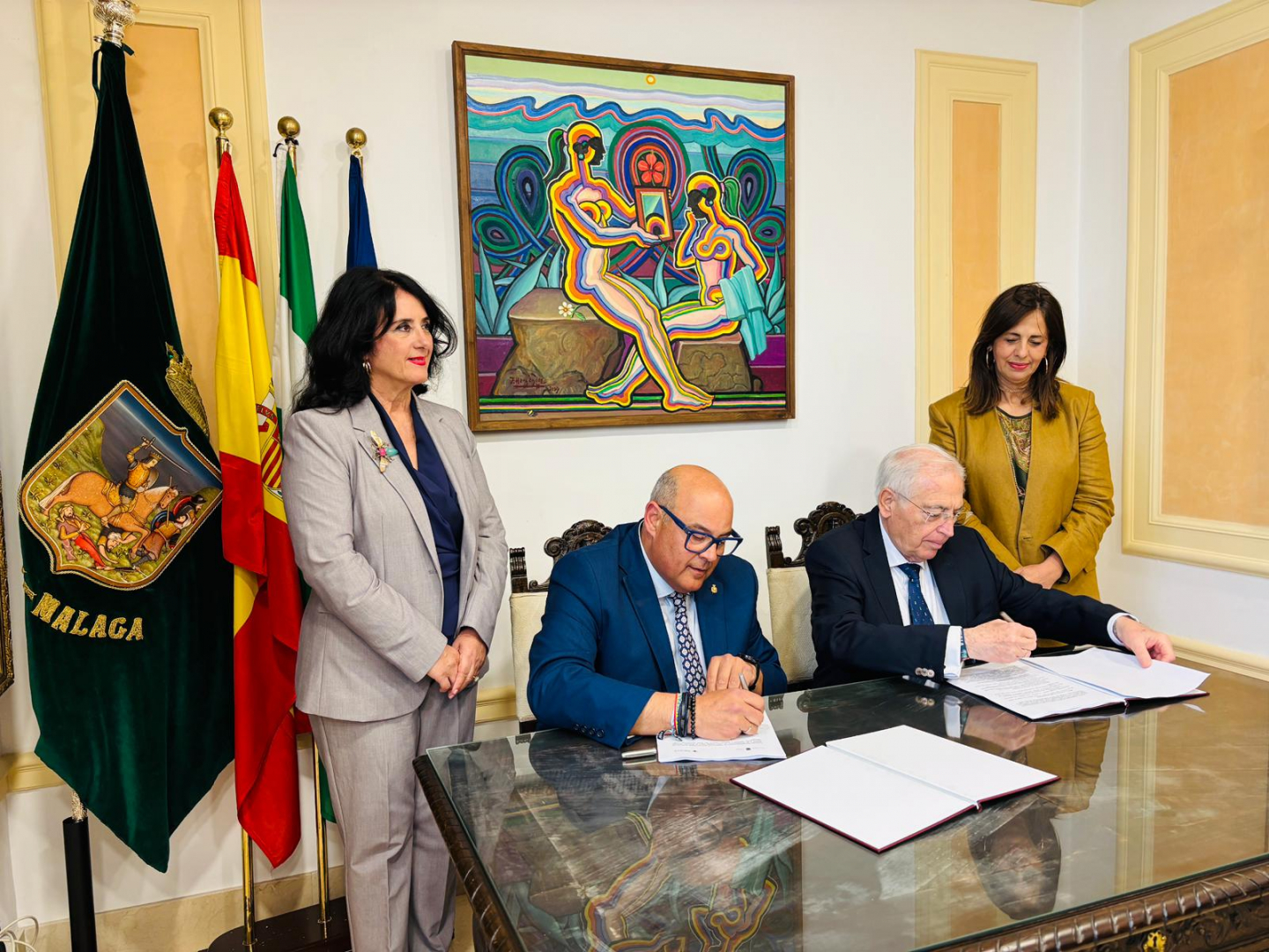 El alcalde de Vélez-Málaga, Jesús Lupiáñez, respaldado por la concejala de Cultura y Patrimonio, Alicia Ramírez, ha rubricado en la mañana de hoy un convenio con el presidente de la Ciudad Autónoma de Melilla, Juan José Imbroda, para recibir la cesión de un amplio compendio documental relacionado con la historia de las Monjas Clarisas y el patrimonio de nuestro municipio. Se trata de un legado que procede del Archivo Histórico local, y que formó parte de la biblioteca del notario Rodolfo Cano, adquirida por el entonces Ayuntamiento melillense a mediados del siglo XX.