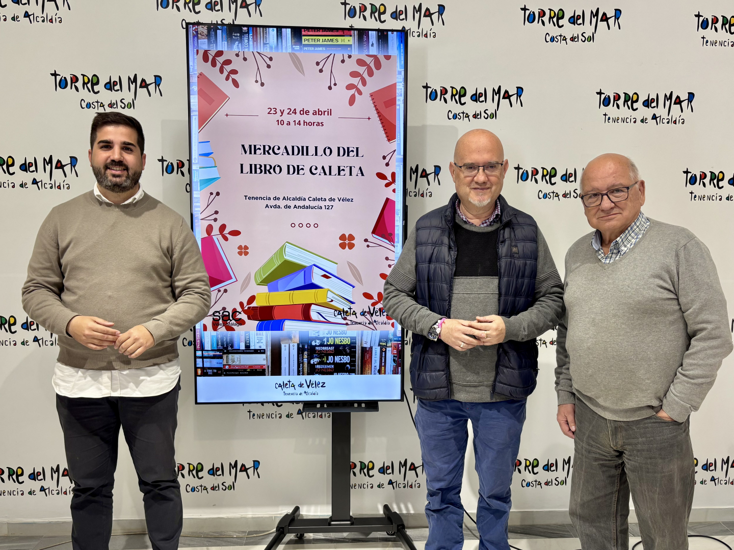 El teniente de alcalde de La Caleta de Vélez, David Segura, y Manel Pérez Sala, miembro de la junta de la Sociedad Amigos de la Cultura de Vélez-Málaga (SAC), han presentado el Mercadillo del Libro que se celebrará los próximos días 23 y 24 de abril en la plaza de la Tenencia de Alcaldía de La Caleta de Vélez, en horario de 10:00 a 14:00 horas.