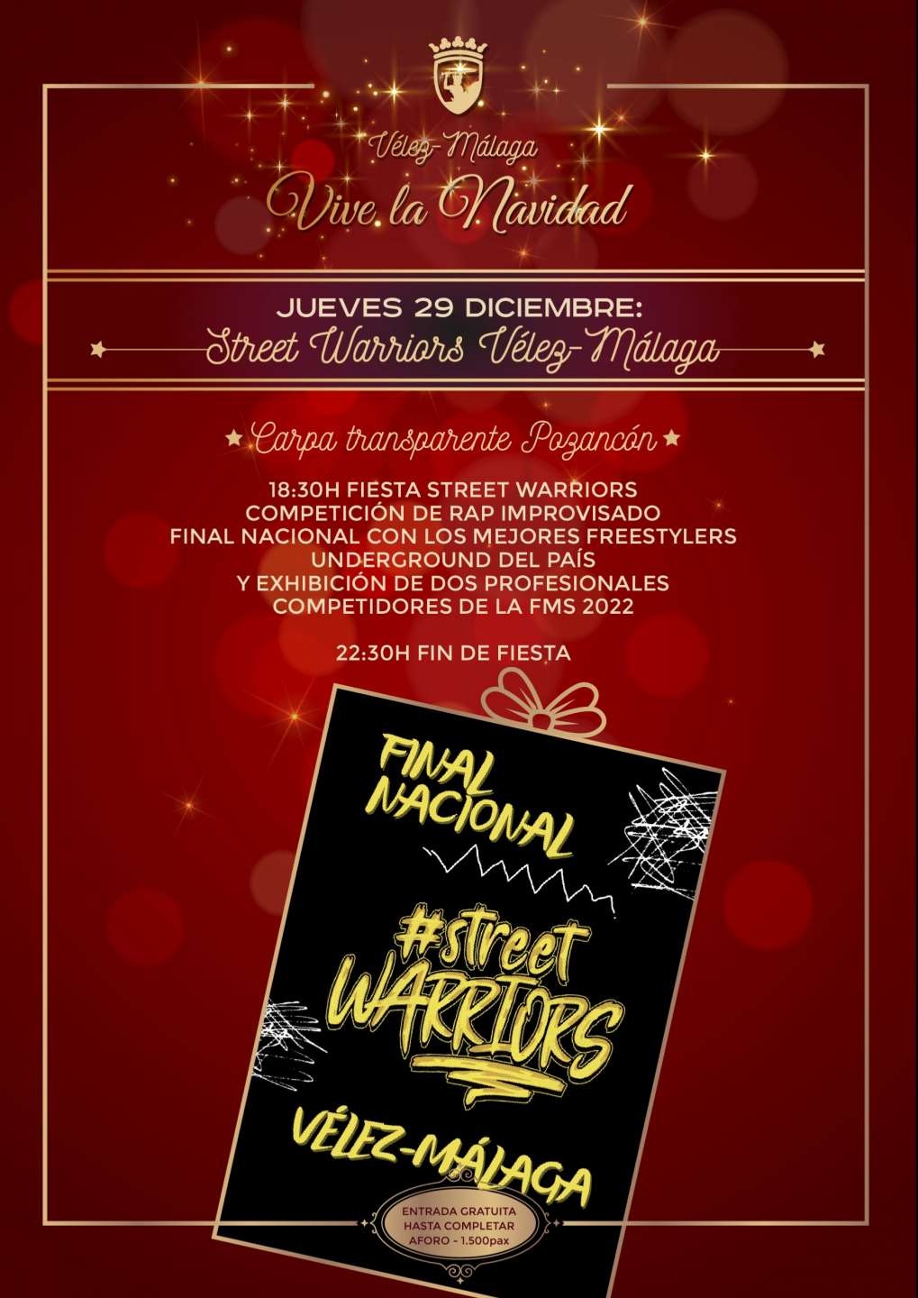 Competición de rap improvisado. Final nacional con los mejores freestylers undergrounds y exhibición de dos profesionales competidores de la FMS 2022