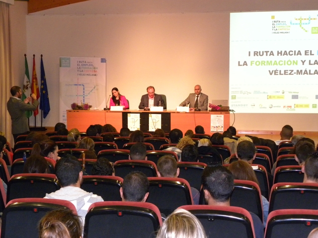 La I Ruta hacia el Empleo, la Formación y la Empresa se ha llevado a cabo en diez espacios repartidos en el palacio de Beniel, Casa Cervantes, edificio de Iniciativa Urbana, Ayuntamiento y teatro del Carmen, que se han transformado en un escenario de oportunidad dentro del casco histórico de Vélez-Málaga.